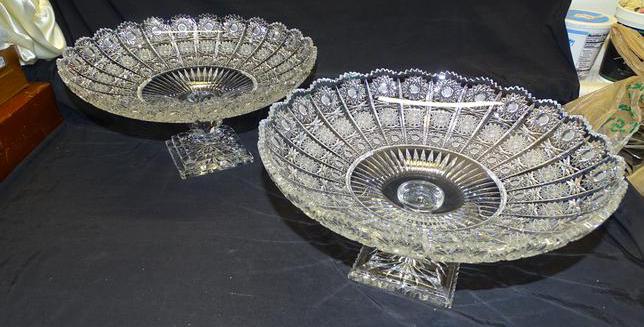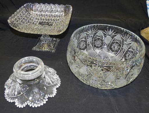 Bohemian Large Fruit Bowl $200 Button & Bows Footed Bowl $220 American Brilliant Punch Bowl Base $75